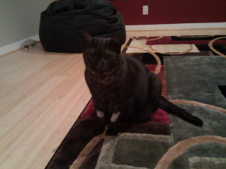 He got his 2 year rabies shot and a cat flu shot, which he took fairly well. The vet also emptied his anal glands (cat's have anal glands? Apparently.) because we mentioned that he sometimes rubbed his bum on the floor and it was slightly irritated. The vet didn't seem concerned with this because the irritation didn't look bad.