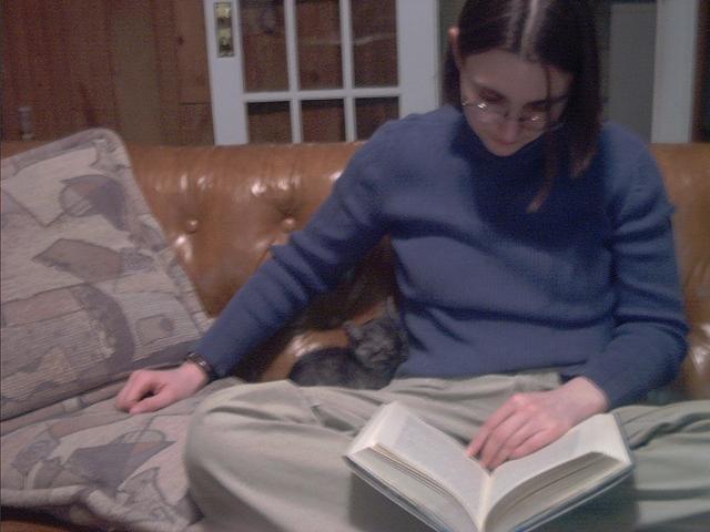 I've spent a lot of time downstairs with Caligula today. When we got back from the doctor's he was coughing a little, and his purr and meow were a bit weird, like he was congested. His eyes were a bit teary and he was sleepy too. Of course I got all worried and called the vet %) She assured me that it's not terribly uncommon for that to happen since he's still working the ketamine out of his system. As long as he's sounding better tomorrow we should be fine. It's still hard to hear my poor kitty all congested and gooey-eyed! He's playful though, so I'm sure he'll recover fine.