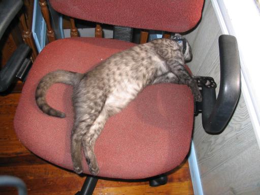 It has been a bit hot, so one of the warm days Caligula just crashed on this chair and fell asleep.