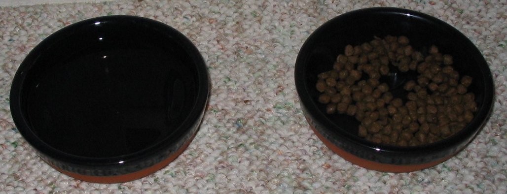 This weekend we ended up going to a big pet store in North Wales after we found the local pet store to be closed for the holiday. While we were there we picked up a couple new bowls for Caligula, since his old one was a simple plastic dish, and he always managed to spill food into the water side. We decided on some dark blue clay bowls that were heavy enough that he wouldn't knock them over or push them around as he did with the old ones, and they look pretty cool.