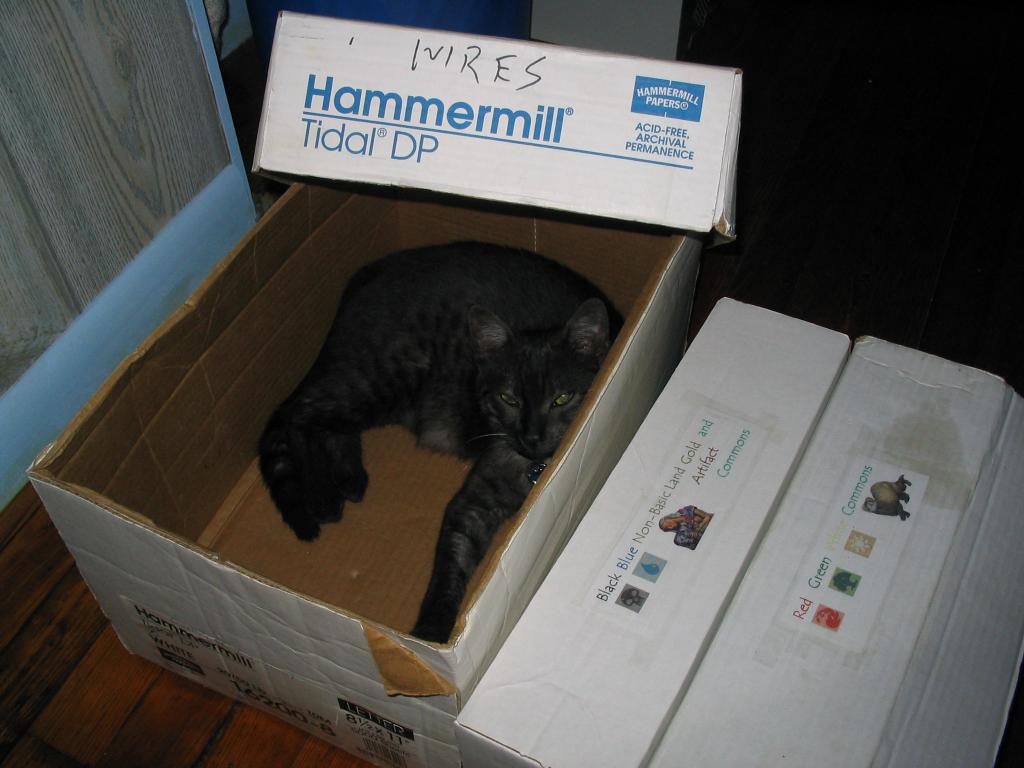 Hanging out in Lyz's old Magic Card box.