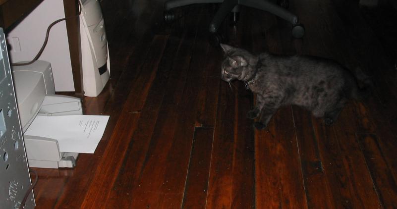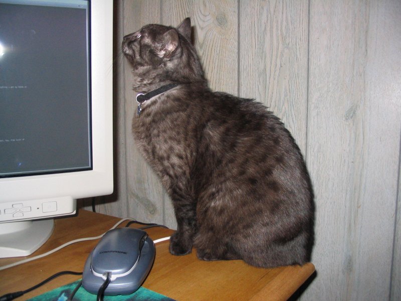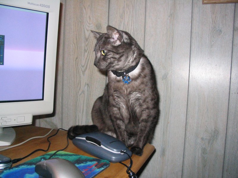 Checking out Lyz's computer monitor.