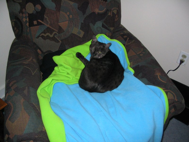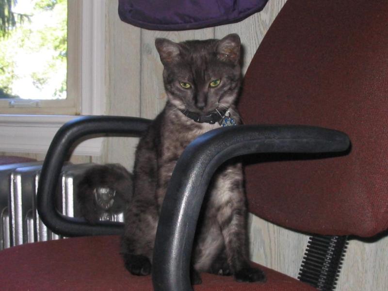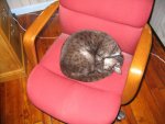 Curled up on Lyz's computer chair.