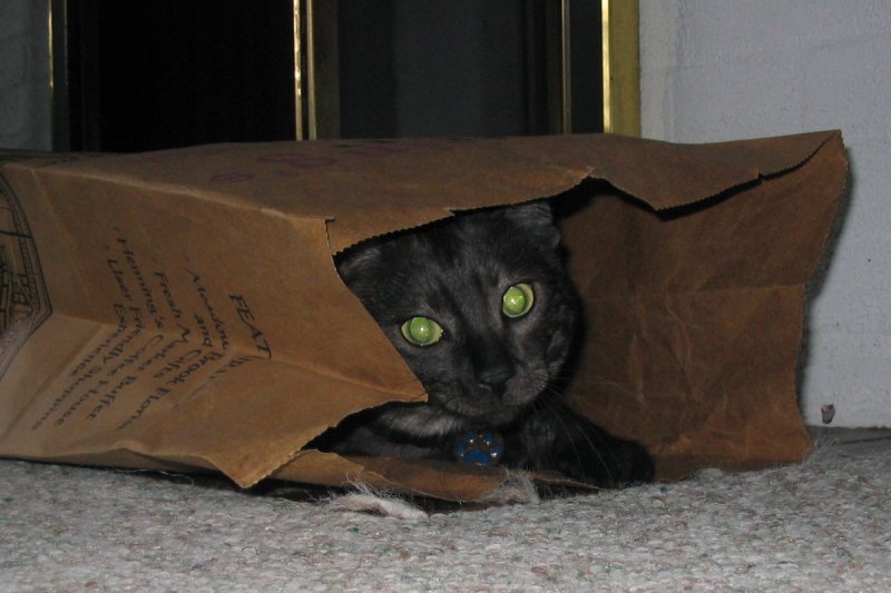 Hiding in a paper bag.