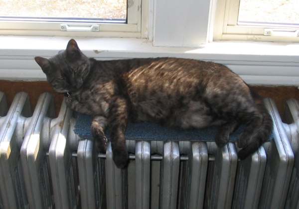 Sleeping on the radiator in the winter.