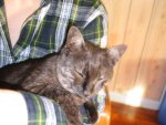 Relaxing on Lyz's arm.